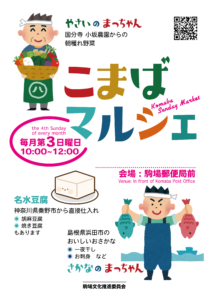 2018年7月からこれまで「まっちゃんの朝市」として開催していた野菜の販売が、「こまばマルシェ」としてパワーアップ!魚や名水豆腐なども合わせて、これからは、毎月第3日曜日に開催します。 ■日時:(毎月 第3日曜)10:0 […]